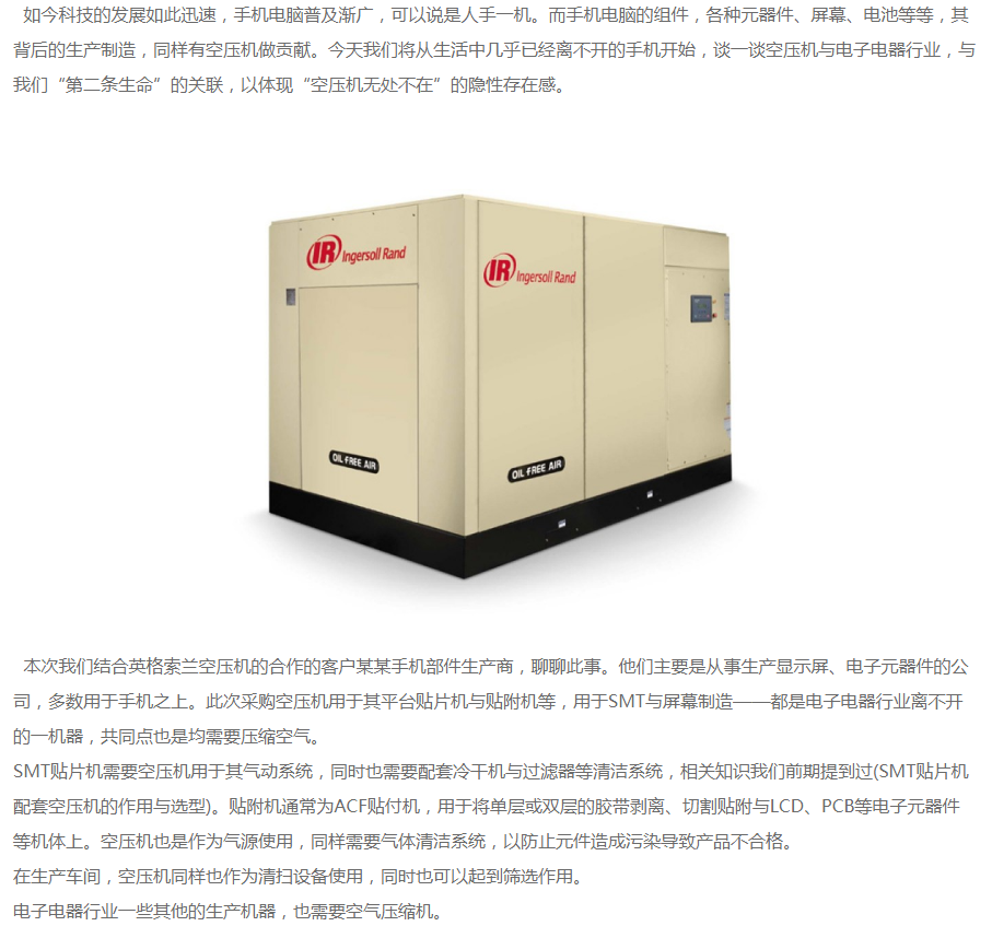 空壓機在手機行業(yè)的應(yīng)用-英格索蘭空壓機